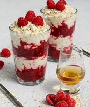 Jídla často končí sladkou pochoutkou, jako je CRANACHAN, lahodná směs malin, šlehačky, ovsa a kapky whisky.